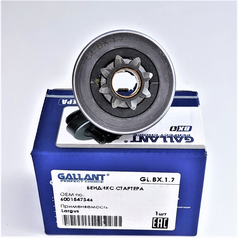 Бендикс стартера Logan Sandero 8кл (GL.BX.1.7) Gallant Логан;Логан (Фаза2);Сандеро;Логан New (с 2014г.);Лада Ларгус;