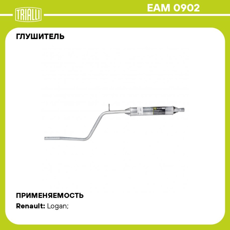 Глушитель средняяя часть Logan 16кл Сандеро АКПП (EAM0902) TRIALLI Lada Largus;Lada Largus Cross;Nissan Almera G15;Renault Sandero;Renault Sandero New с 2014 г;Renault Logan c 2010 г;Renault Logan New с 2014 г;Renault Logan New с 2018 г;
