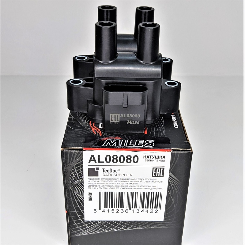 Катушка зажигания Logan 8 кл. с 2010 (AL08080) Miles Renault Logan;Renault Logan c 2010 г;Renault Sandero;Renault Symbol;Lada Largus;Renault Logan New с 2014 г;Renault Logan New с 2018 г;Renault Sandero New с 2014 г;