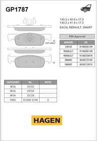 Колодки передние Logan NEW (GP1787) Hi-Q Renault Sandero New с 2014 г;Renault Logan New с 2014 г;Renault Logan New с 2018 г;
