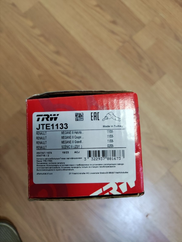 Наконечник рулевой Fluence Megane3 TRW правый (JTE1133) TRW Флюэнс;Меган3;