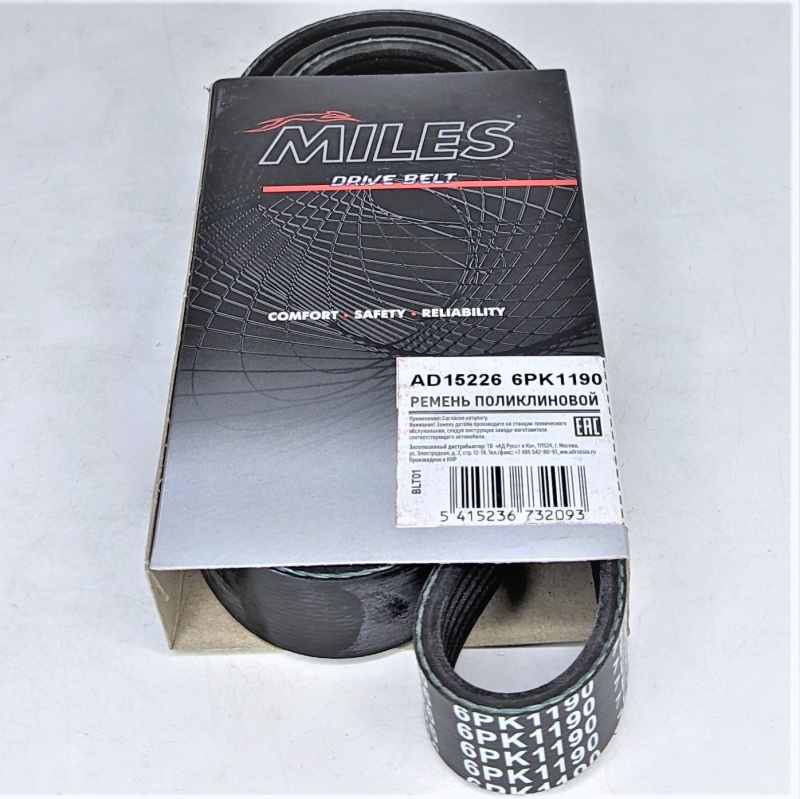 Ремень генератора Almera g15 6pk1190 (без кондиционера) (AD15226) Miles Nissan Almera G15;Lada Largus;Lada Largus Cross;