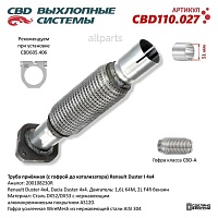 Труба приемная c гофрой CBD110.027 CBD Renault Duster;